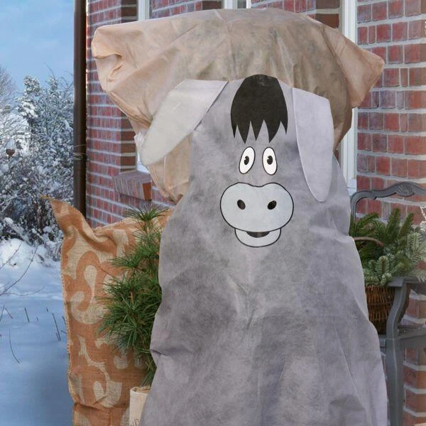 Een decoratieve beschermhoes voor planten in de vorm van een ezel. Deze originele plantenhoes beschermt jouw planten tijdens de winter tegen uitdrogende wind, vorst en sneeuw. Hij is water-, licht- en luchtdoorlatend en gemaakt van 50 g/m² fleece.